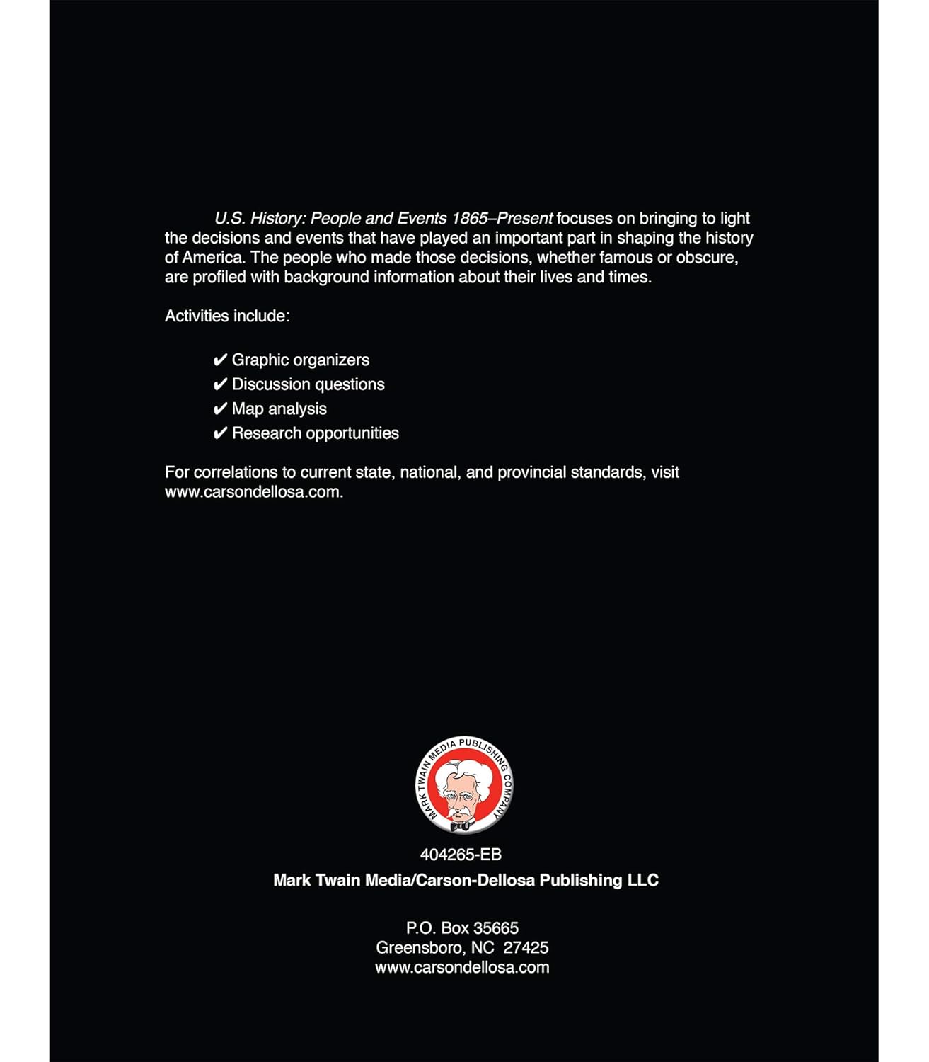 Help your middle school or high school child build proficiency in US history and AP us history with the activity-packed Mark Twain American History Workbook!
