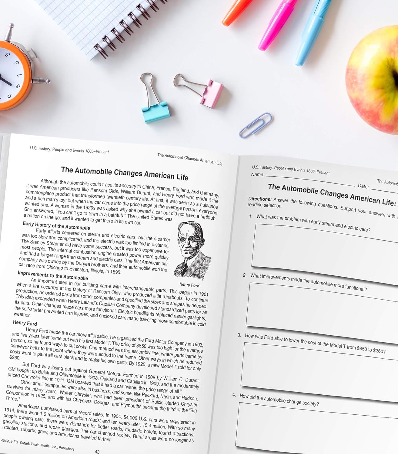 The Mark Twain American History Workbook Contains: