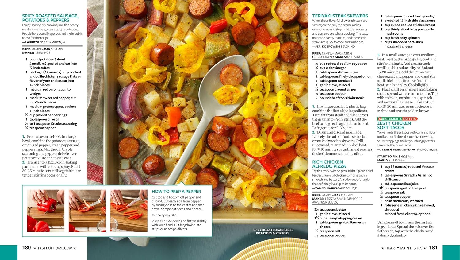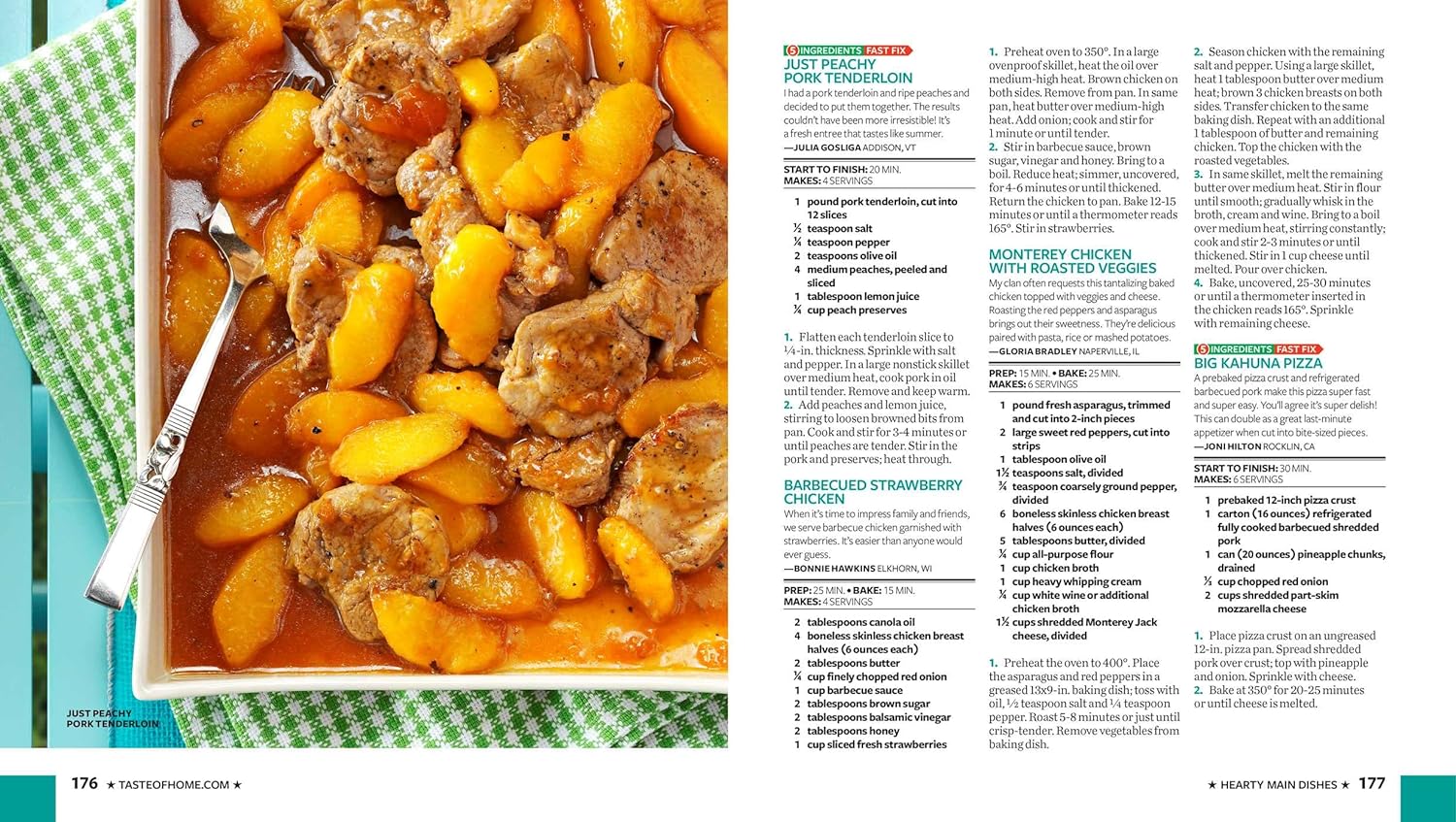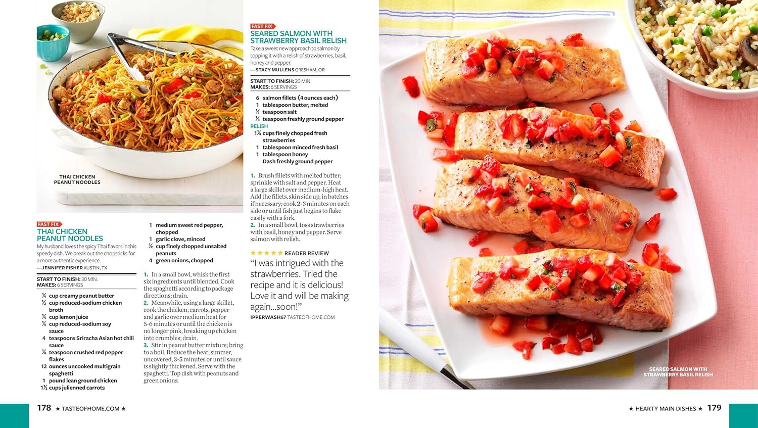 To make cooking even simpler, many recipes feature “Five Ingredients” or “Fast Fix” icons, offering options that save time without sacrificing flavor. Additionally, vibrant full-page photos accompany nearly every recipe, sparking inspiration and excitement.