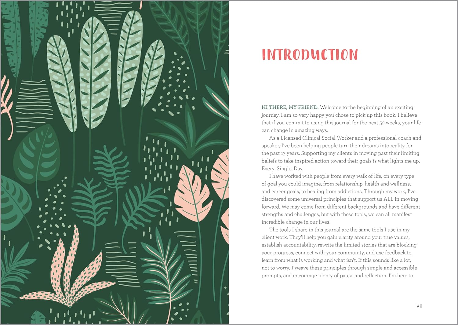 Empowering self-reflection―You’ll set yourself up for success by identifying your core values, shaping the goals you want to work toward throughout the year, and writing a personalized Power Statement.Dream-life manifestation―52 thought-provoking weekly prompts will help you tune into your mind, body, and spirit as you pursue your goals. Additional prompts for staying accountable and identifying blocks will help keep you on track.Positive self-celebration―Reflective journaling prompts encourage you to look back at the year and rejoice in the progress you’ve made, as well as explore your goals for the coming year.